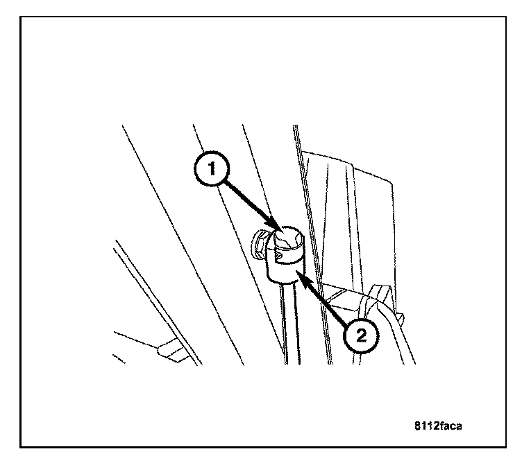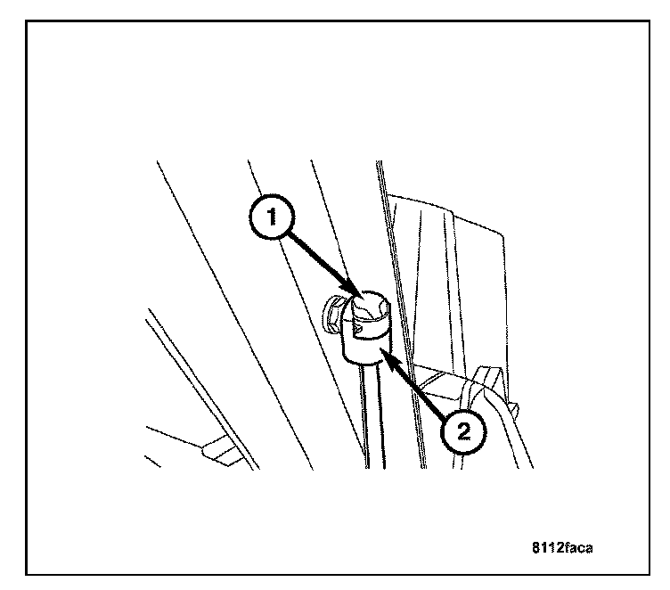 2. Using a suitable propping device, prop the rear lift-gate up and install the gas prop (2) to its mount point. The install the upper lock cap (1) on the gas prop.
