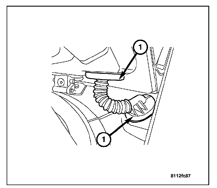 4. Remove the rubber grommet (1) from the liftgate. Then pull the harness through the access hole.