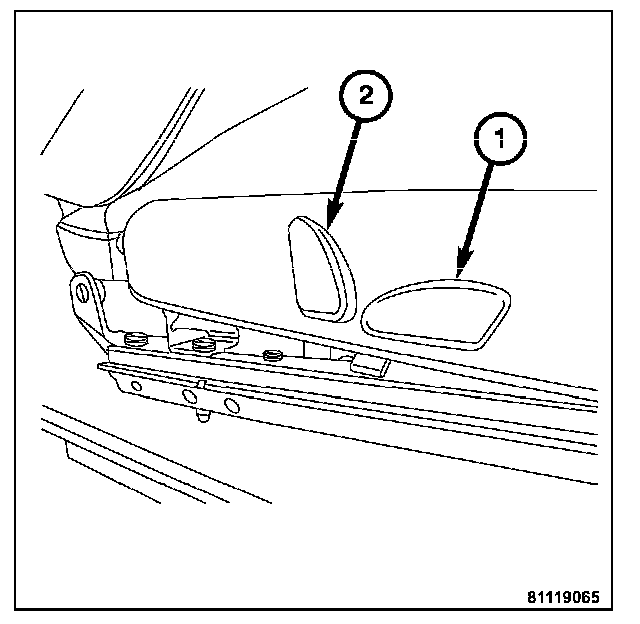 Both seats feature power adjustable positioning and power reclining as standard equipment. Each seat contains a lower (1) and a rear (2) power adjustment switch located on the lower outboard seat trim panel between the seat base and the door. The driver's seat features 8-way adjustment while the passenger's seat is 4-way adjustable.
