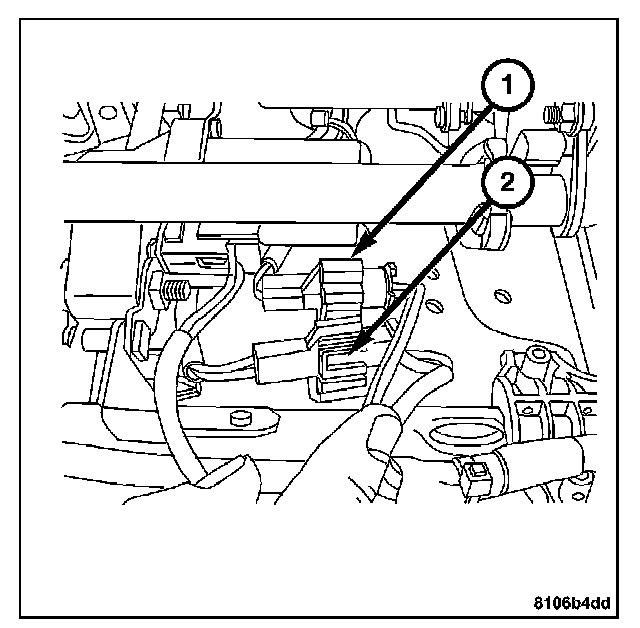 5. Disconnect the power seat switch harness connectors (1) and (2).