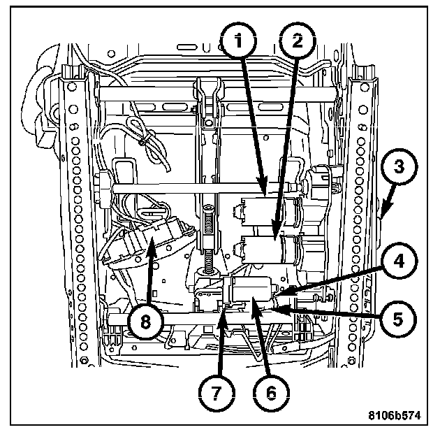 2. Install the power seat track power harness connector (8).