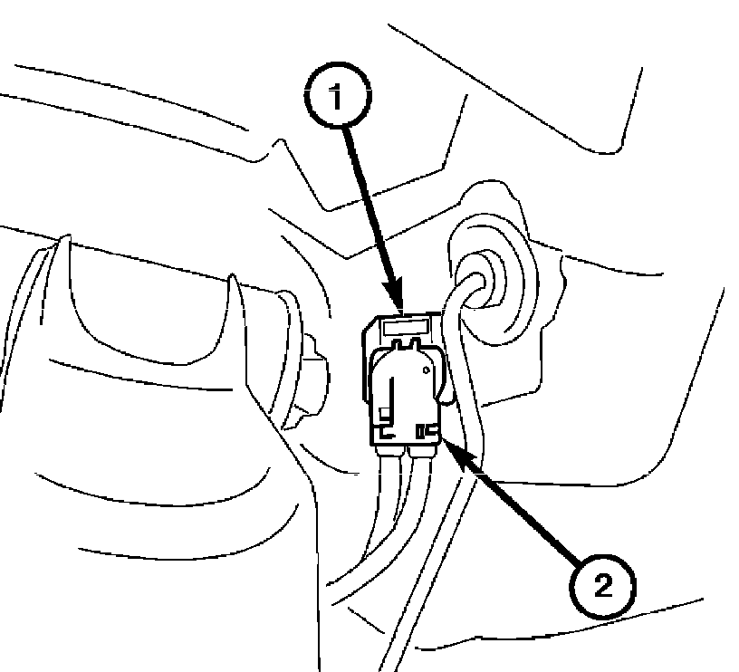 1. Connect the wheel speed sensor/brake wear indicator wire harness connector (2) to the body mount connector (1).
