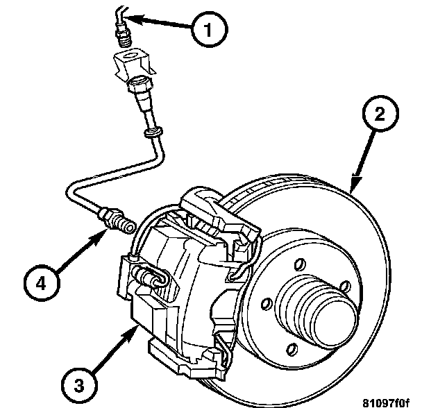 Single piston brake calipers (3) are used on the front and on the rear. Ventilated disc brake rotors (2) are used on the front and solid disc brake rotors are used on the rear.