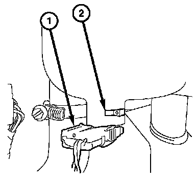 3. Depress the locking tabs and pull the coolant level sensor (2) from the coolant recovery reservoir.