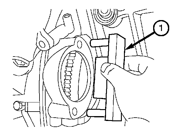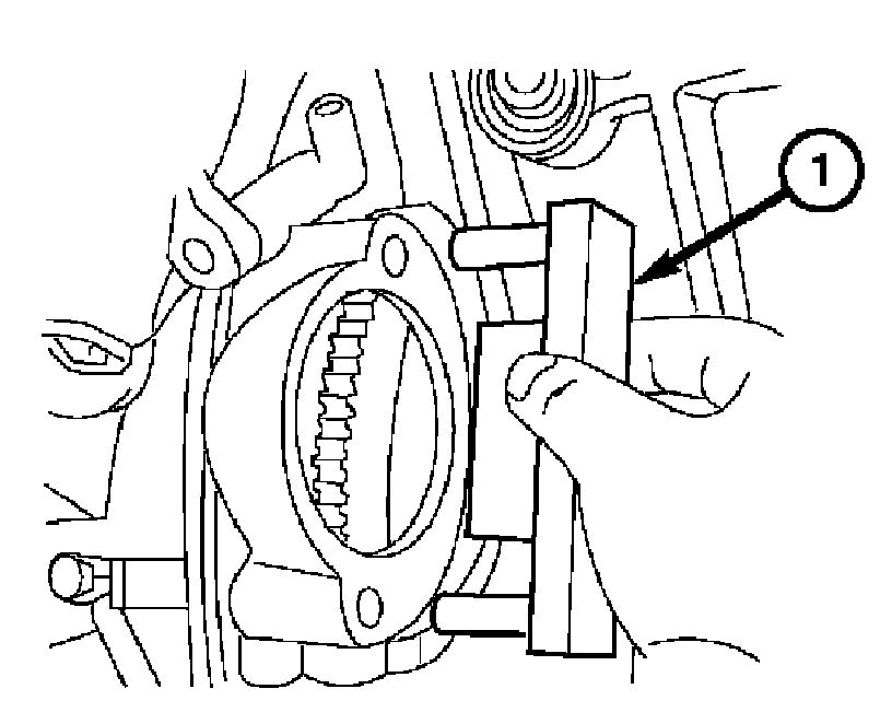 4. Using Special Tool 9102 Flywheel Locking Tool (1), lock the flywheel.