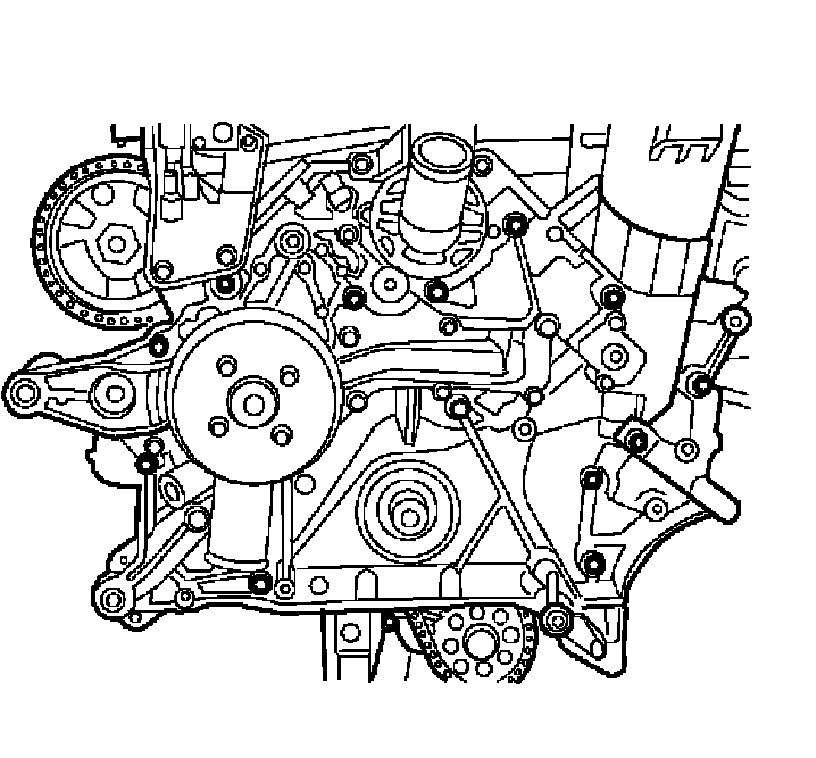 10. Install the timing chain cover. Tighten the bolts to 20 Nm (15 ft. lbs.).