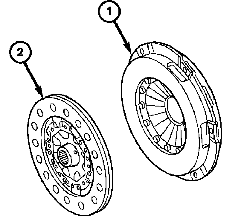 3. Remove the clutch cover (1) and the clutch (2) if equipped.