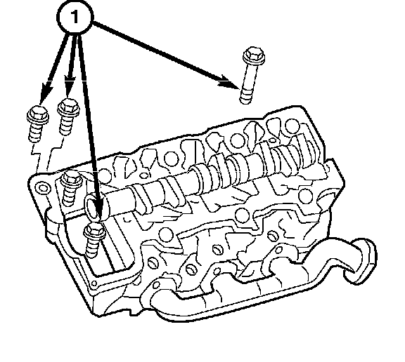 1. Install the cylinder heads, and install the bolts (1).