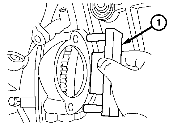 13. Using Special Tool 9102 (1) Flywheel Locking Tool, lock the flywheel by inserting the tool into the starter opening.