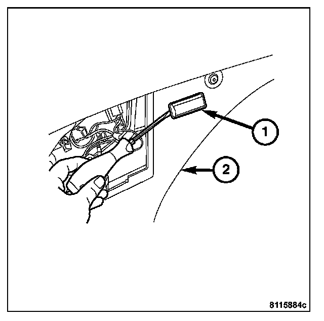 2. Install the cargo lamp unit (2) into the liftgate trim (3).