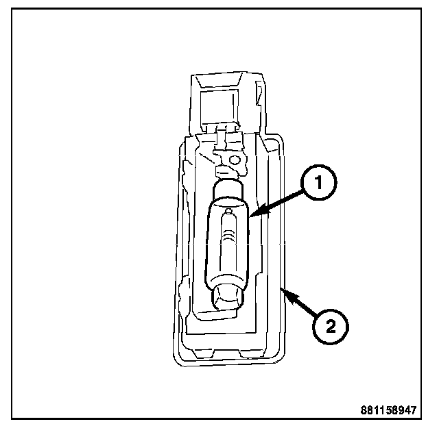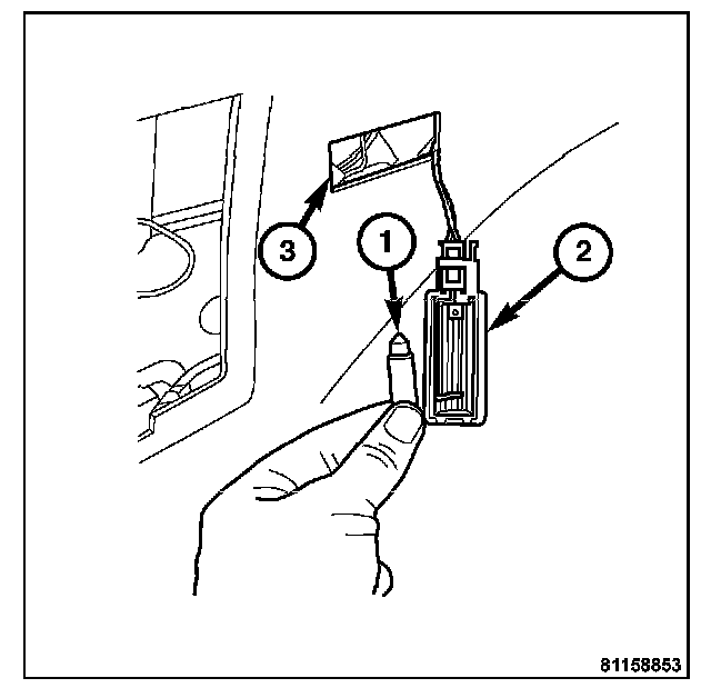 3. Remove the bulb (1) from the cargo lamp unit (2).