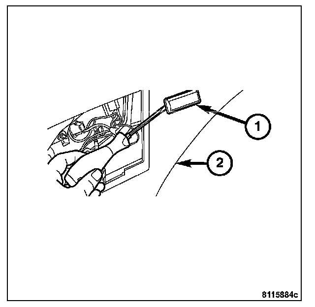 1. Connect the harness connector (1) into cargo lamp unit and insert into the cargo area interior trim panel (2).