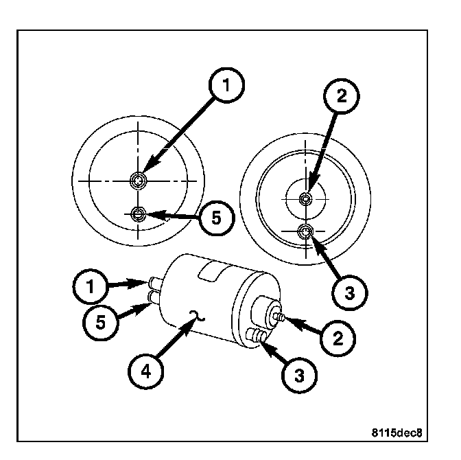 The fuel flows through the filter (1) trapping any fuel impurities that may lie in the bottom of the tank.