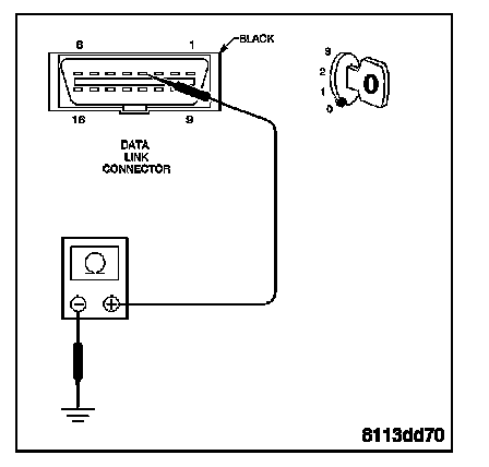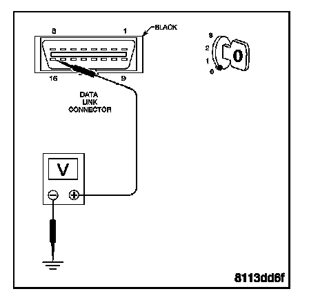 Measure the voltage of the Fused B(+) circuit at cavity 16 of the Data Link Connector.