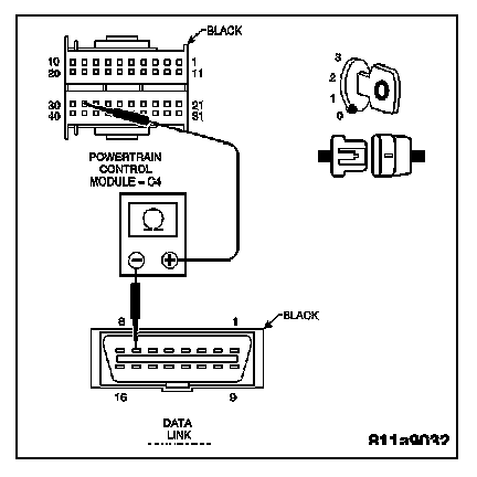 Measure the resistance of the PCM SCI Receive circuit from the PCM C4 harness connector to the DLC.