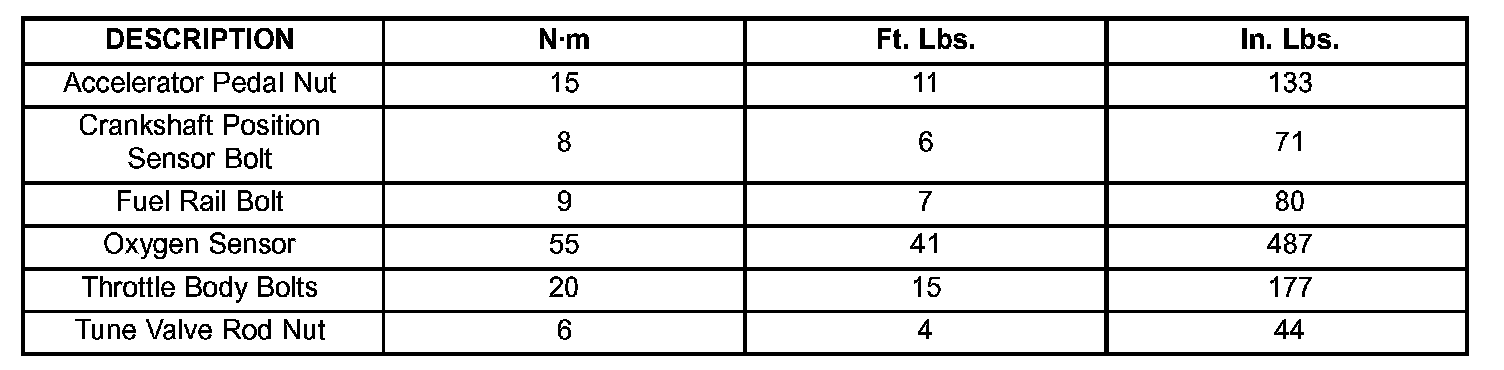 Torque Specifications: