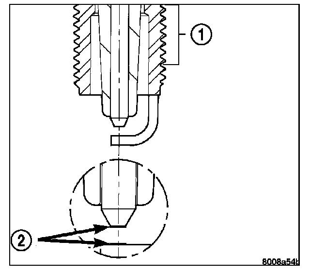 Spark plugs that have low mileage may be cleaned and reused if not otherwise defective. Adjust the gap between the electrodes to 1.00 mm (0.039 in.).