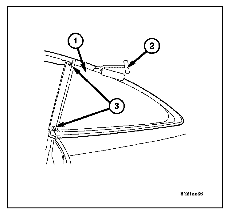 2. Drill and remove quarter glass retaining rivets (3).