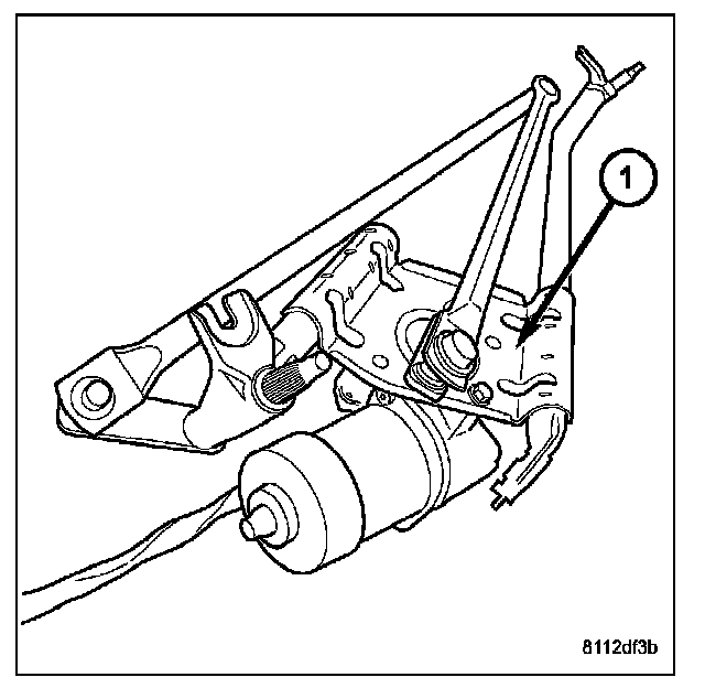 3. Align the wiper motor crank arm (1) onto the wiper motor shaft in the park position (3) and press into place.