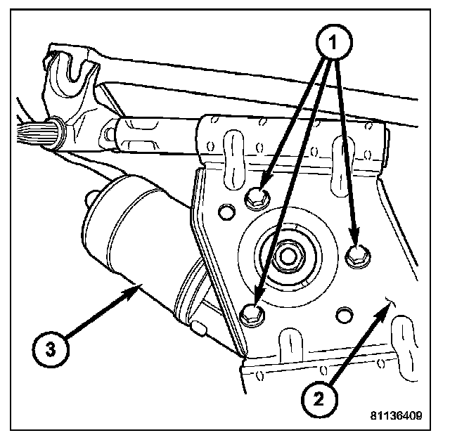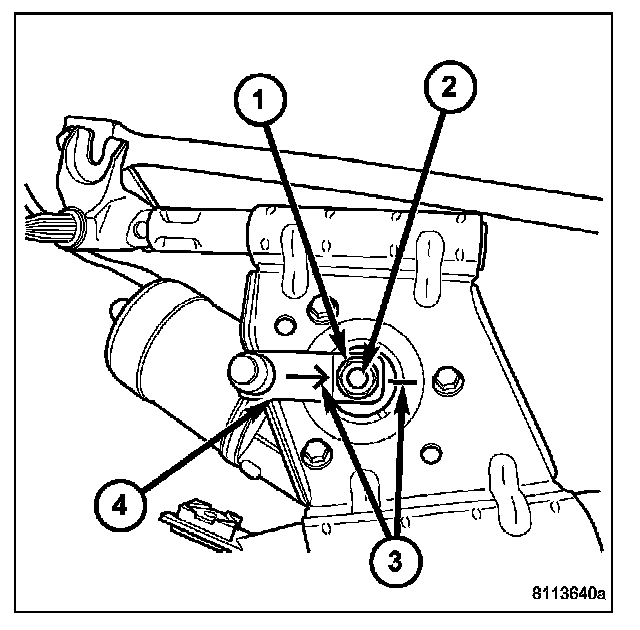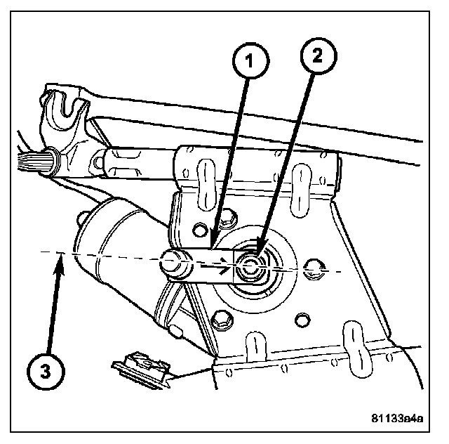 4. Scribe a reference mark (3) on both the wiper module and the crank arm for proper alignment during reassembly.
