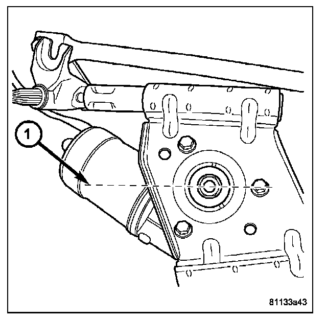 6. Rotate the multifunction switch back to the OFF position and wait until the wiper motor stops. It should now be in the park position (1) and prepared for wiper motor crank installation.