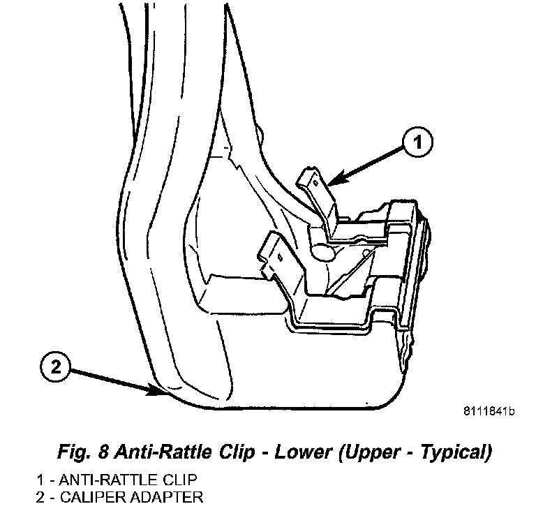 1. Place brake shoes in anti-rattle clips on adapter (Fig. 7). Make sure clips are properly installed (Fig. 8).