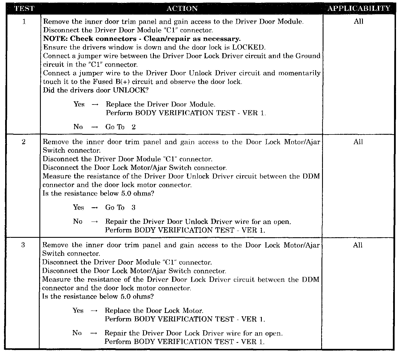 DRIVER DOOR FAILS TO LOCK AND UNLOCK