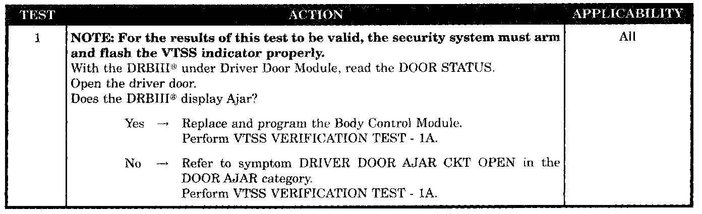 VTSS DOES NOT TRIP FROM DRIVERS DOOR