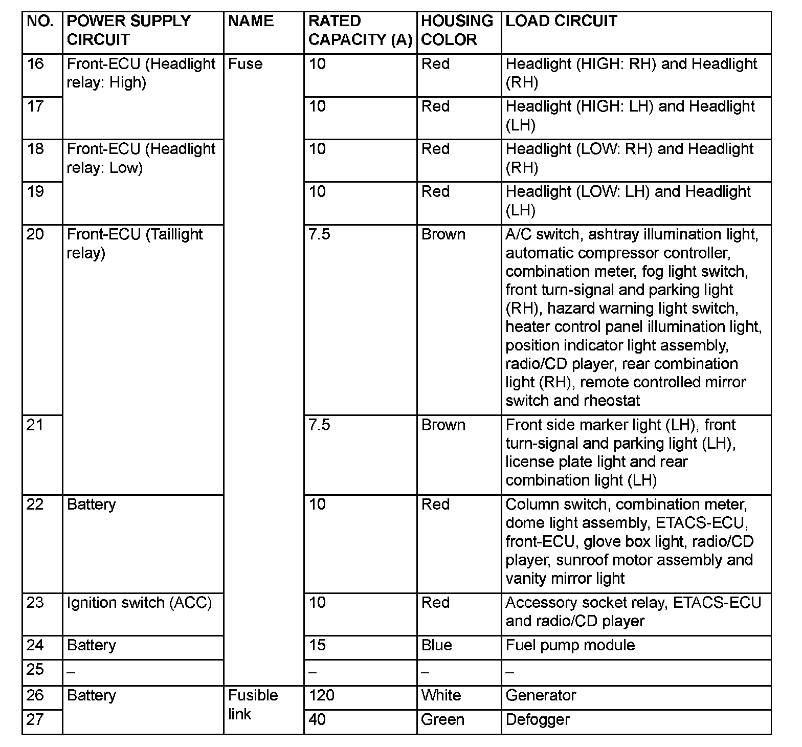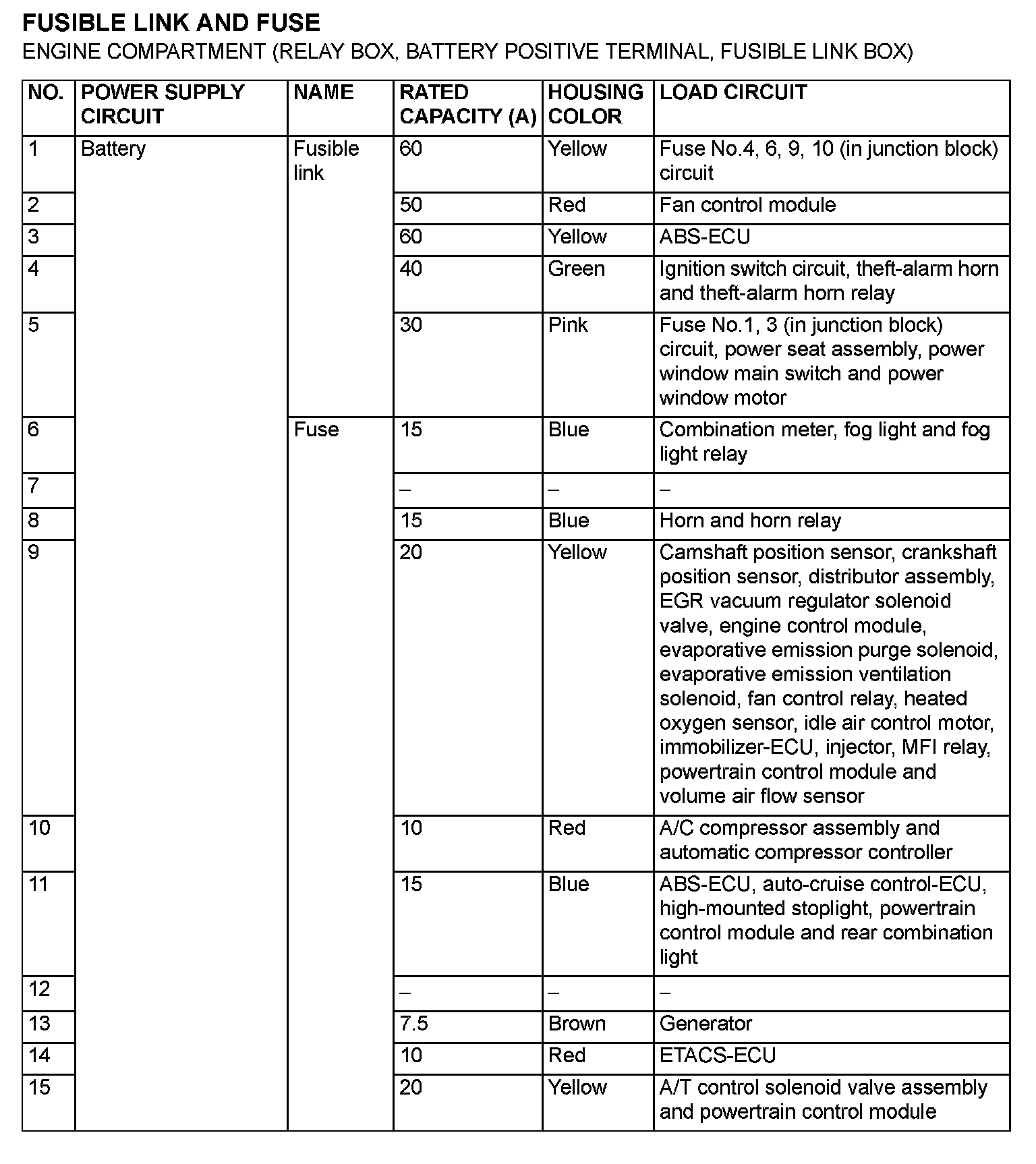 Fusible Links 1-25 (Relay Box In Engine Compartment):