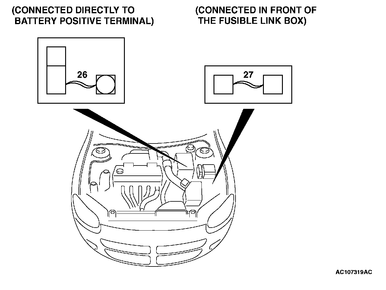 Fusible Link 26 (Connected Directly To Battery Positive Terminal) , Fusible Link 27 (Connected In Front Of The Fusible Link Box):