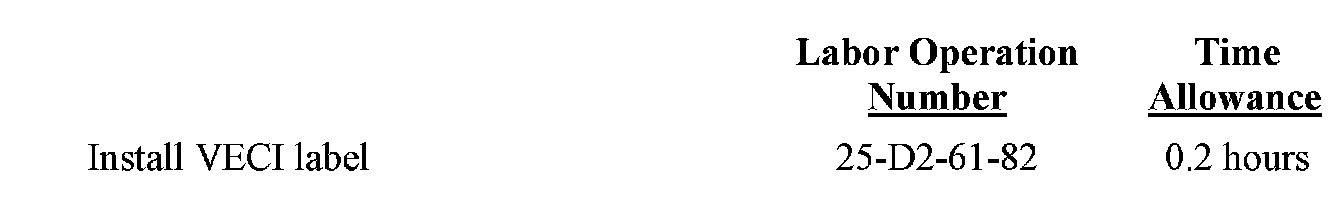If an owner's label is lost, or if dealers require more labels for inventory vehicles, additional VECI labels, PN 04578230AD, may be ordered as needed.