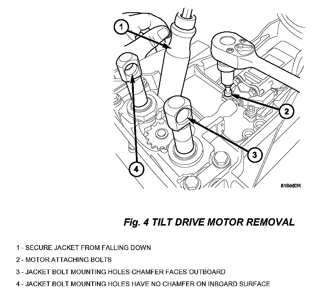 5. Remove jacket bolt from the upper tilt gear assembly (Fig. 3).