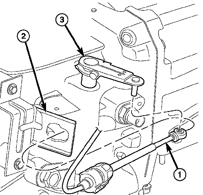 12. Disconnect the gearshift cable (1) from the transmission manual valve lever (3).