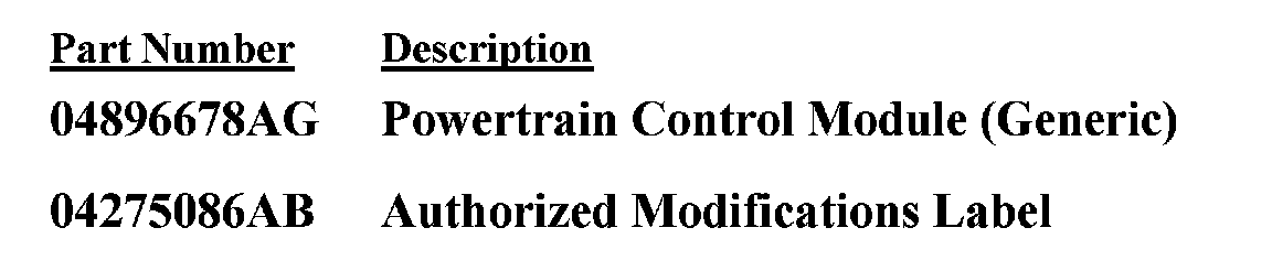Due to the small number of involved vehicles, no Powertrain Control Modules or Authorized modification labels will be distributed to involved dealers. Parts may be ordered as needed to support scheduled repairs.
