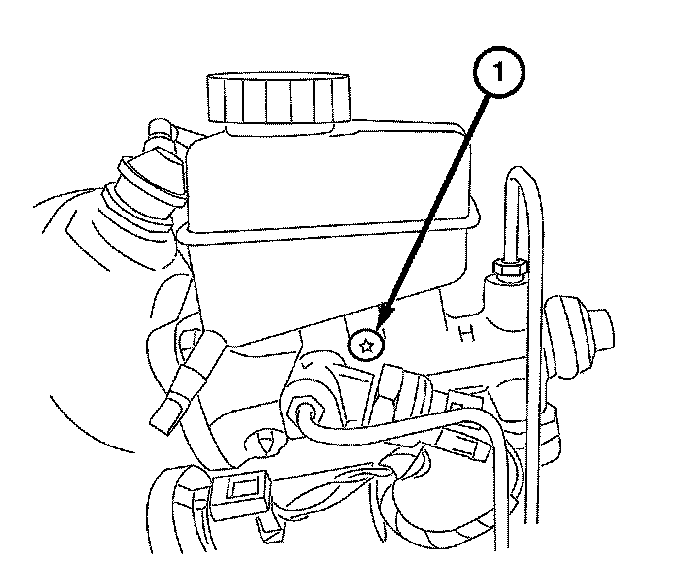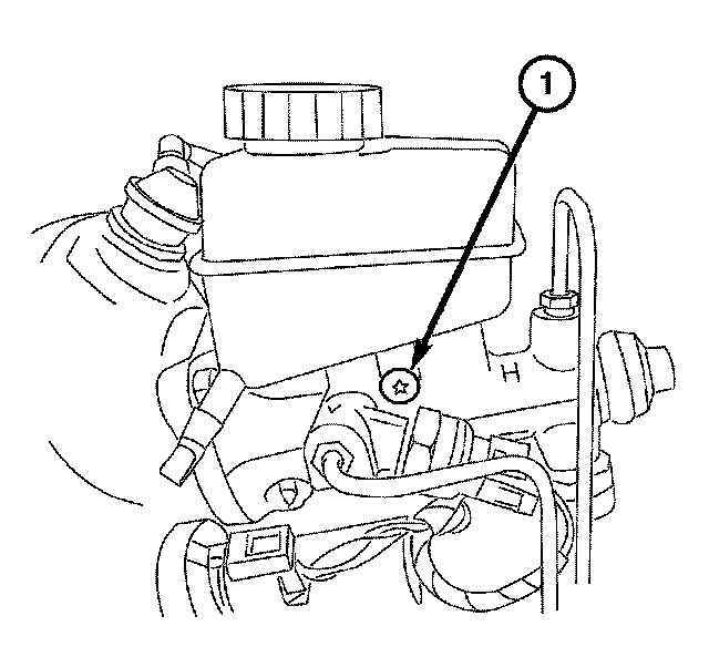 2. Install the screw (1) attaching the fluid reservoir to the master cylinder.