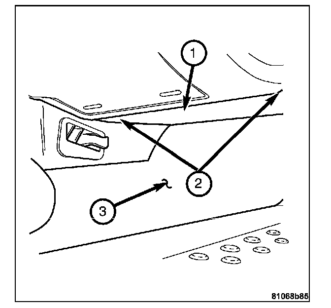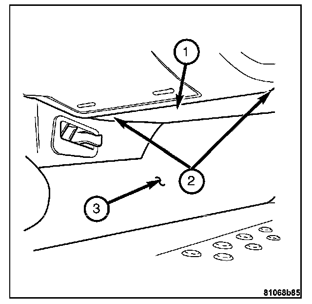 8. Install the bolts (1) attaching the instrument panel support to the front of the vehicle bulkhead.