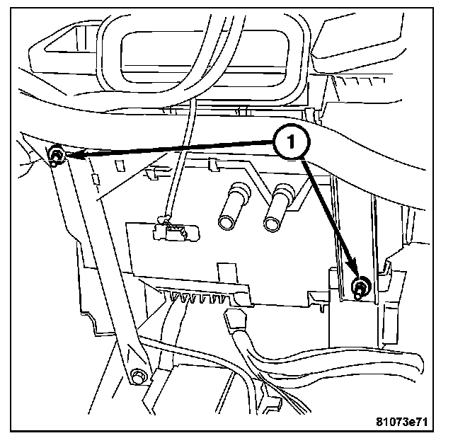 10. Install the nuts on the heater housing (1) attaching it to the instrument panel support.