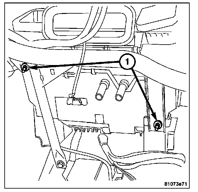 20. Remove the nuts (1) on the heater case attaching it to the instrument panel support.