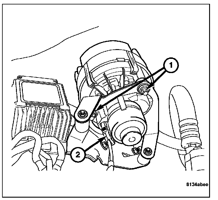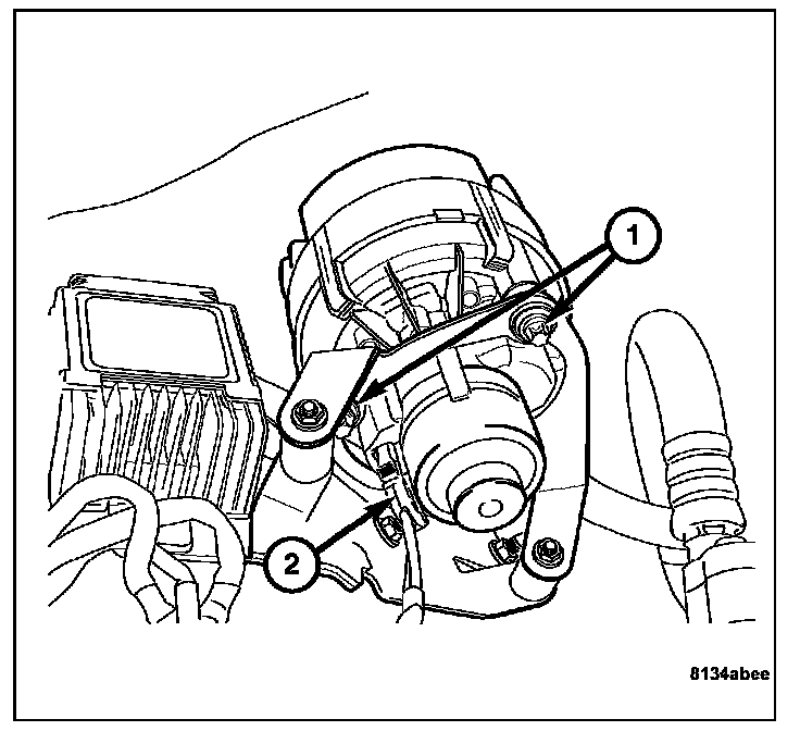 2. Install the air pump retaining nuts (1). Tighten nuts to 7 N.m (62 in. lbs.).
