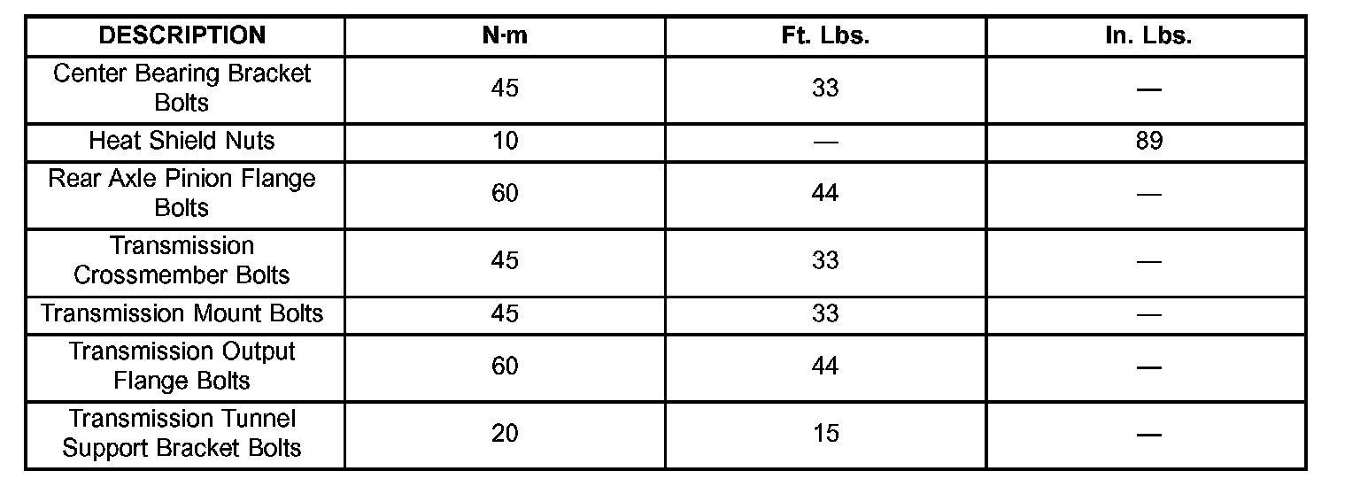 TORQUE SPECIFICATIONS