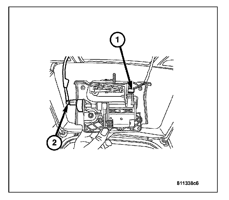 REMOVALThe liftgate lock switch (1) is serviced with the liftgate latch assembly. For complete liftgate latch removal procedures, refer to Liftgate Latch Removal. Procedures