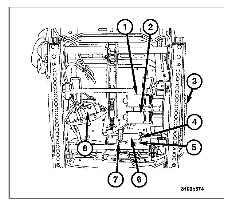 5. Remove the power seat track power harness connector (8).