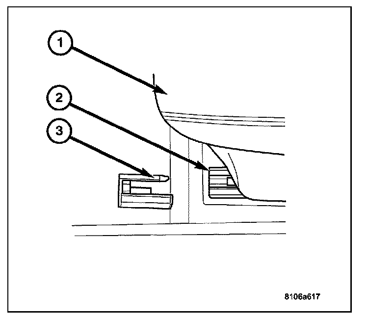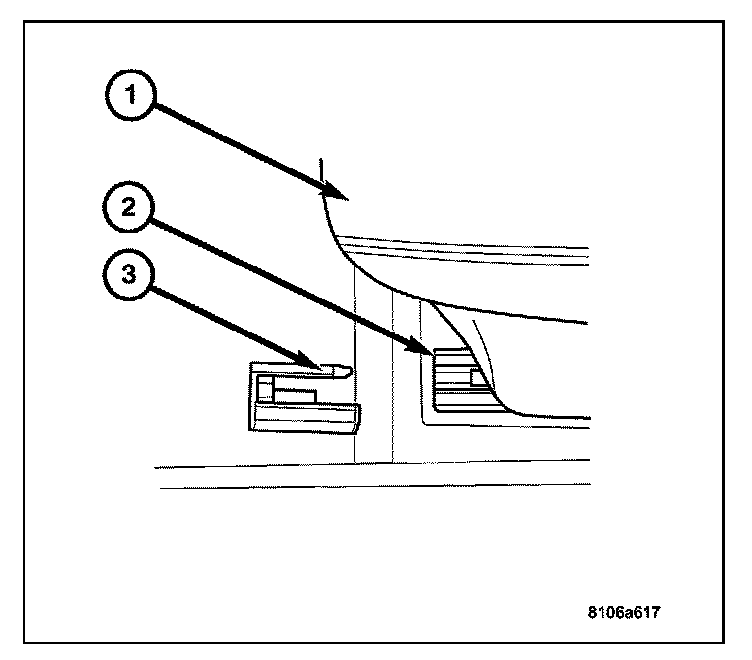 9. Install the plastic covering (3) to the seat tracks.