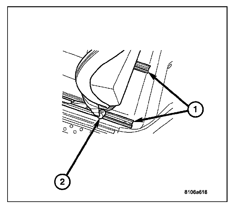 5. Remove the bolt (2) on the seat track for the seat belt mounting.