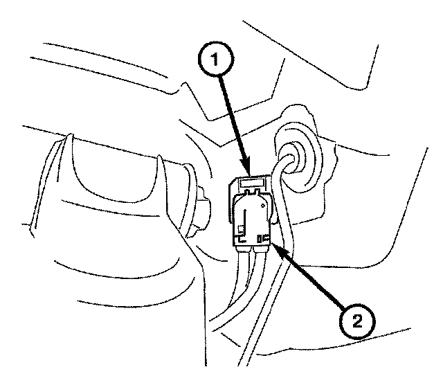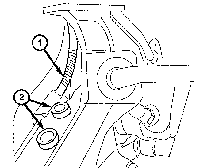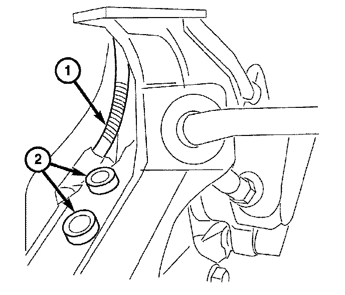 3. Disconnect the wheel speed / brake wear indicator wire harness connector (2) from the body mount connector (1).