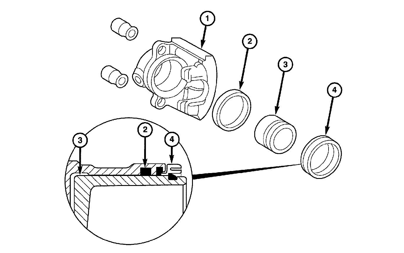 Clean the caliper components with clean brake fluid or Brake Clean� only. Wipe the caliper and piston dry with lint free towels or use low pressure compressed air.