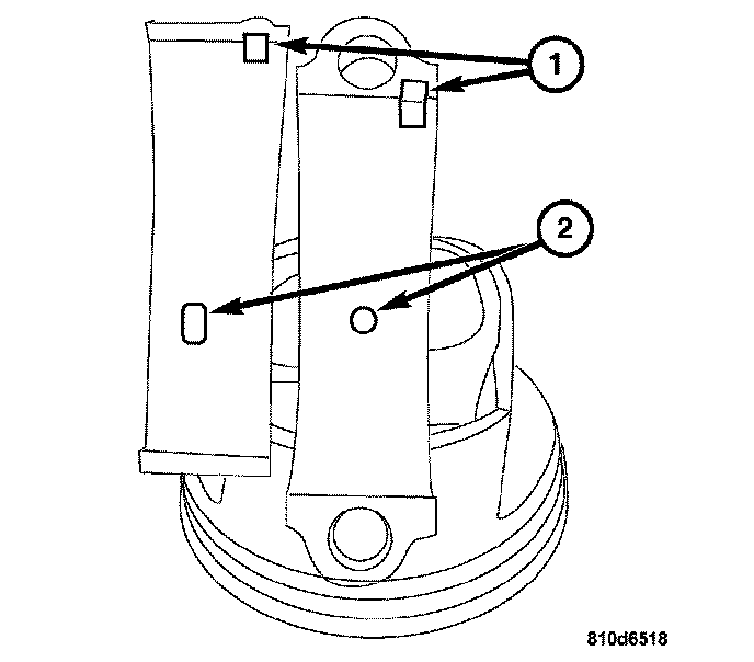 2. Mark the connecting rods and rod caps (1) for reassembly.