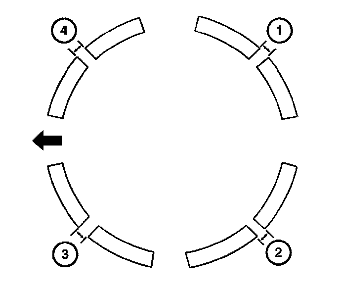 5. Install the rings on the pistons as shown. Compression ring (1) Sealing ring (2) Oil Ring Rail (3) Oil Ring Expander (4)