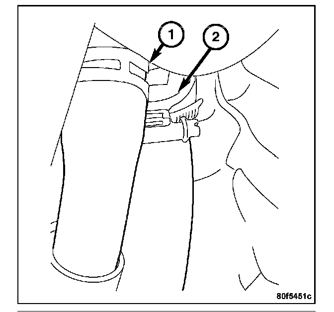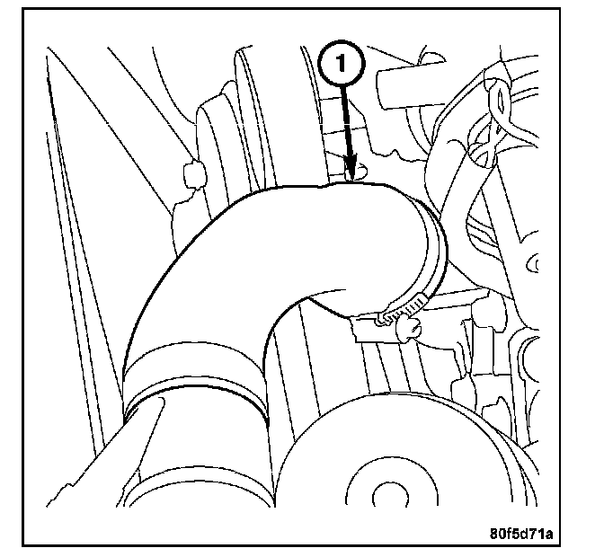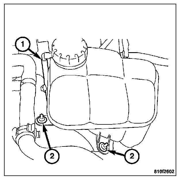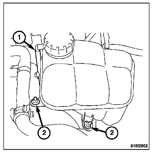 3. Relieve pressure in cooling system by turning the radiator cap on the reservoir to catch "1".