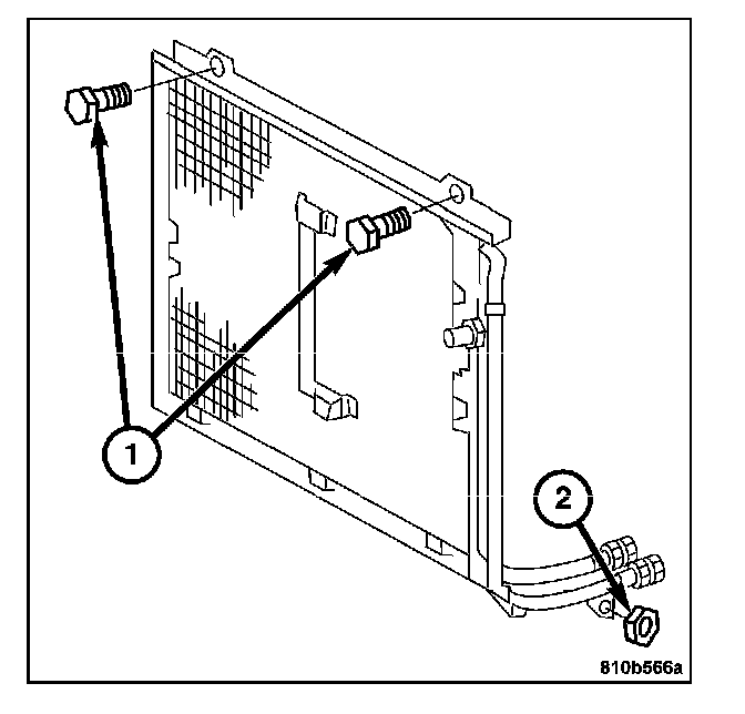 3. Install the refrigerant lines (1) to the condenser. Tighten to 24 Nm (18 ft. lbs.).